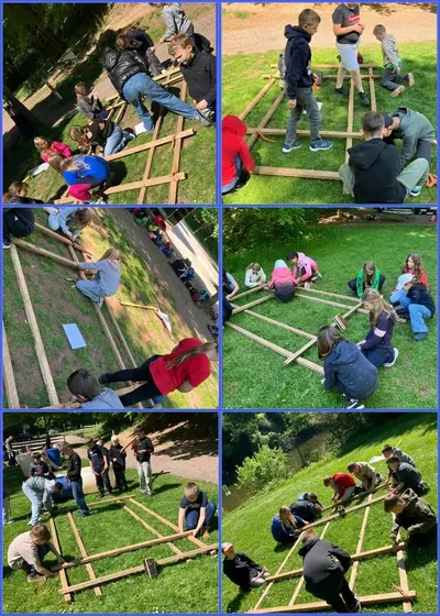 Nach dem Essen fingen wir in Gruppen mit dem Projekt Floßbau an.